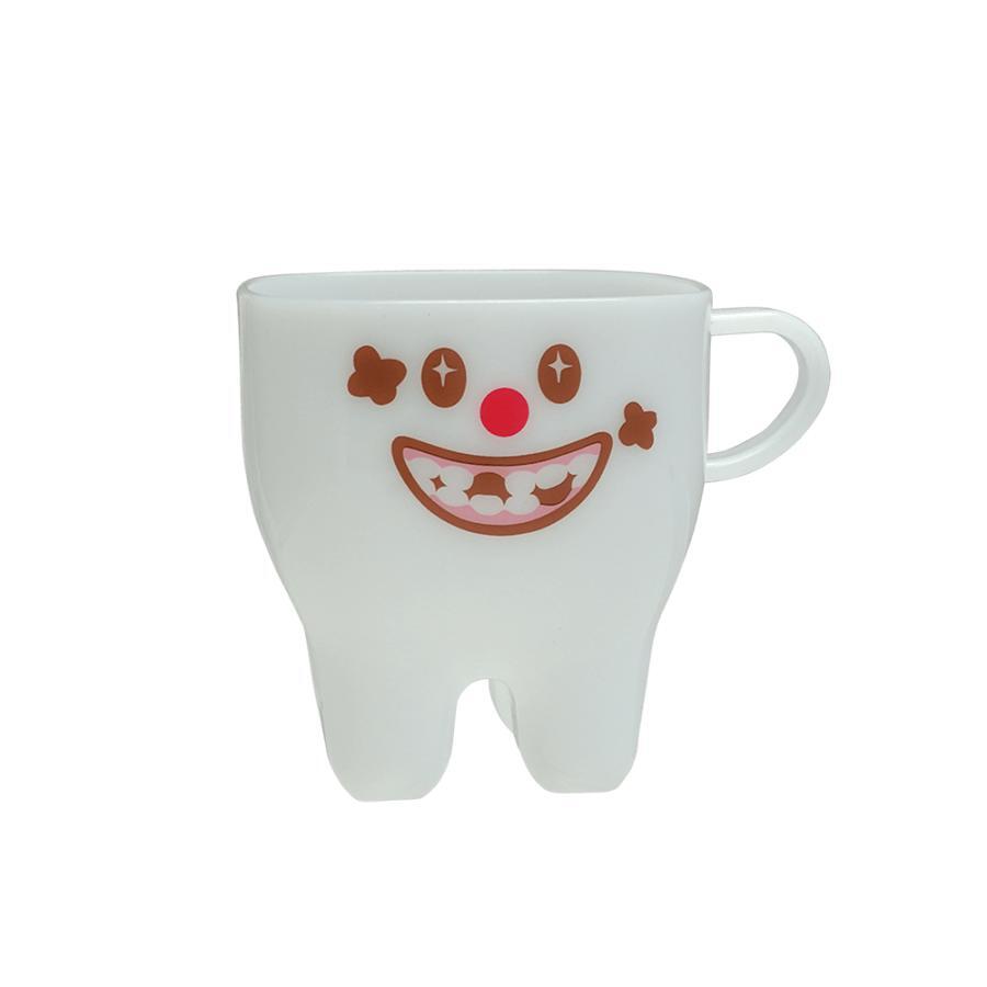 歯磨き用プラカップ。ユニークな歯の形。4本足で安定性バッチリ。割れにくいプラスチック。日本製です。ロングセラー商品。