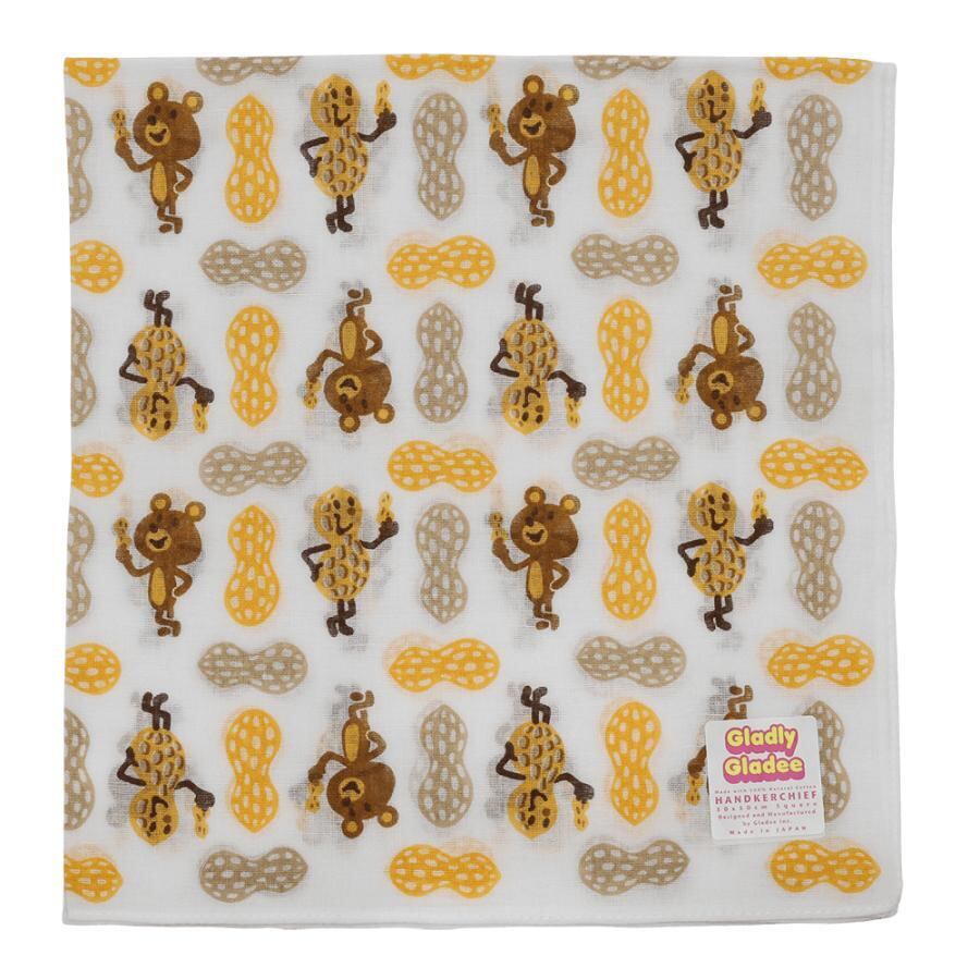 やわらかなガーゼのランチクロスです。大判のハンカチです。みんなが大好きなピーナツ柄。お弁当包みなどにどうぞ。