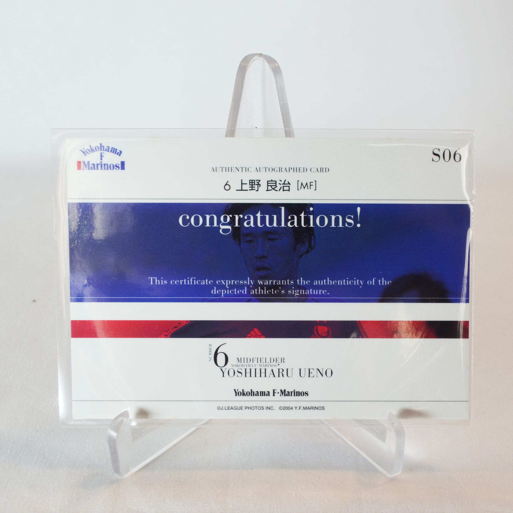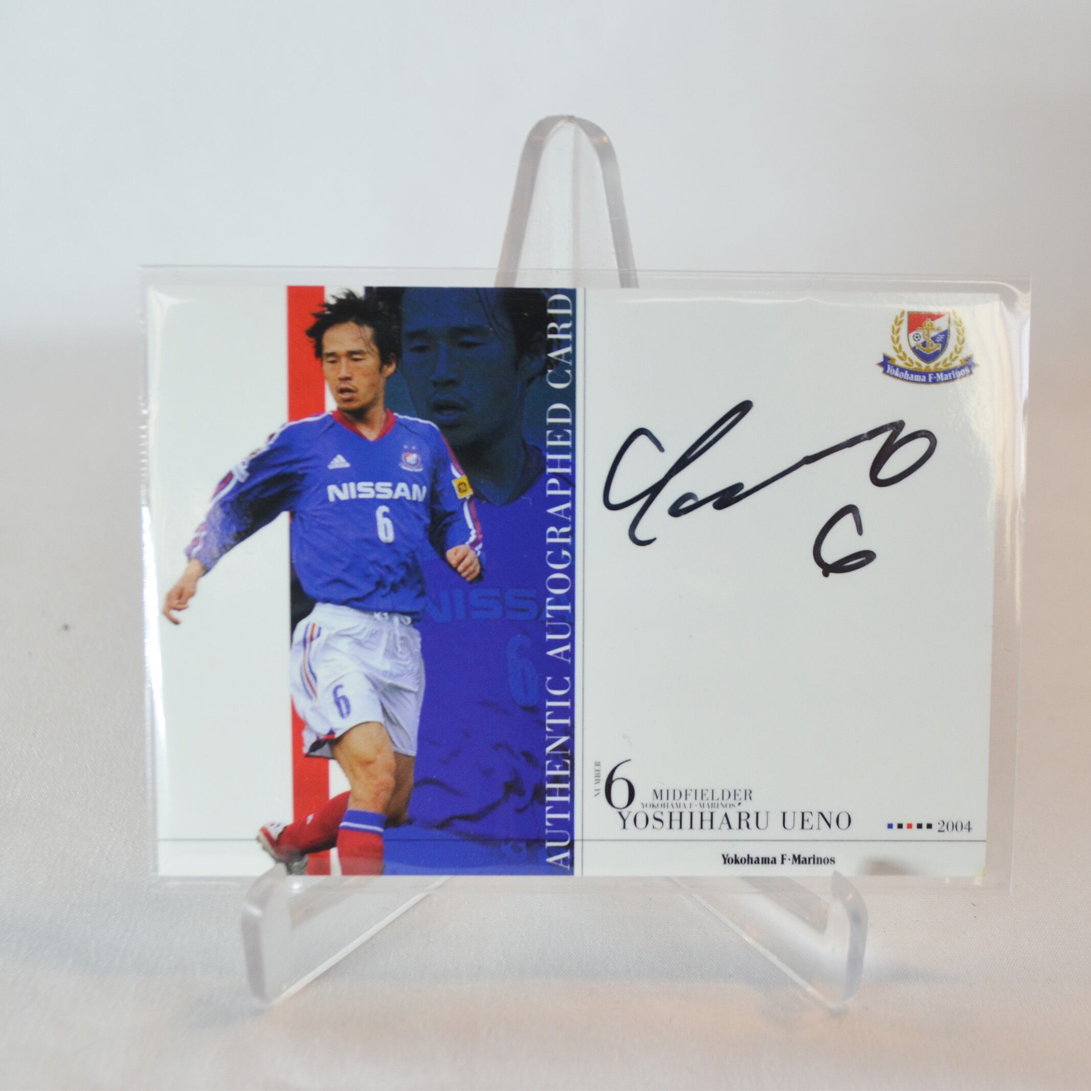 マリノス、上野良治の直筆サインカードです。